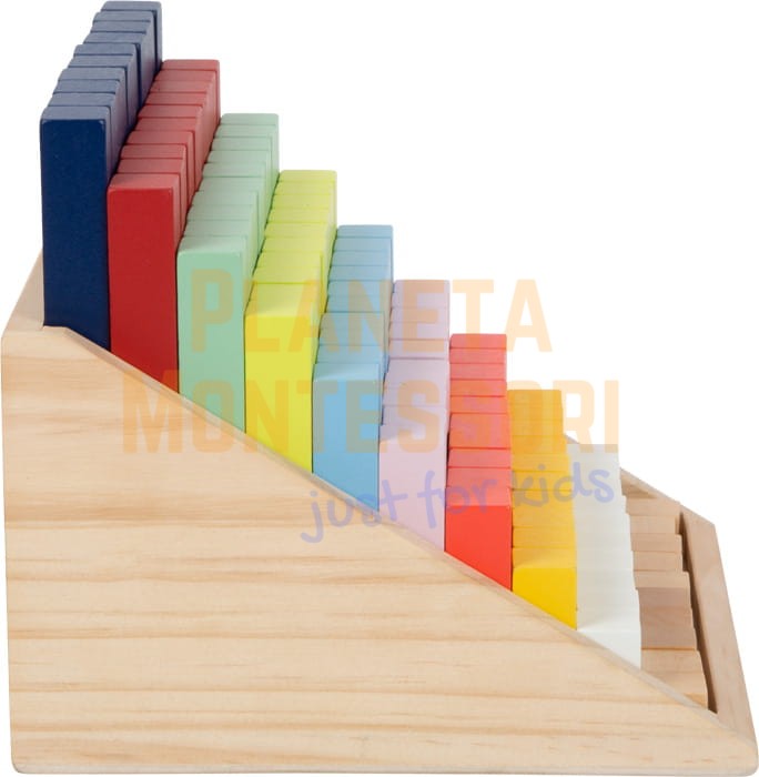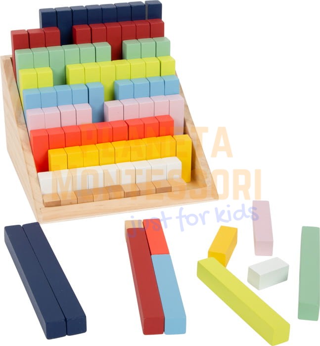 Ten wszechstronny zestaw patyczków matematycznych wykonanych z litego drewna przekazuje wiedzę o ilościach i proporcjach, wizualizując je i dając dzieciom szybkie i jasne pierwsze zrozumienie liczb.