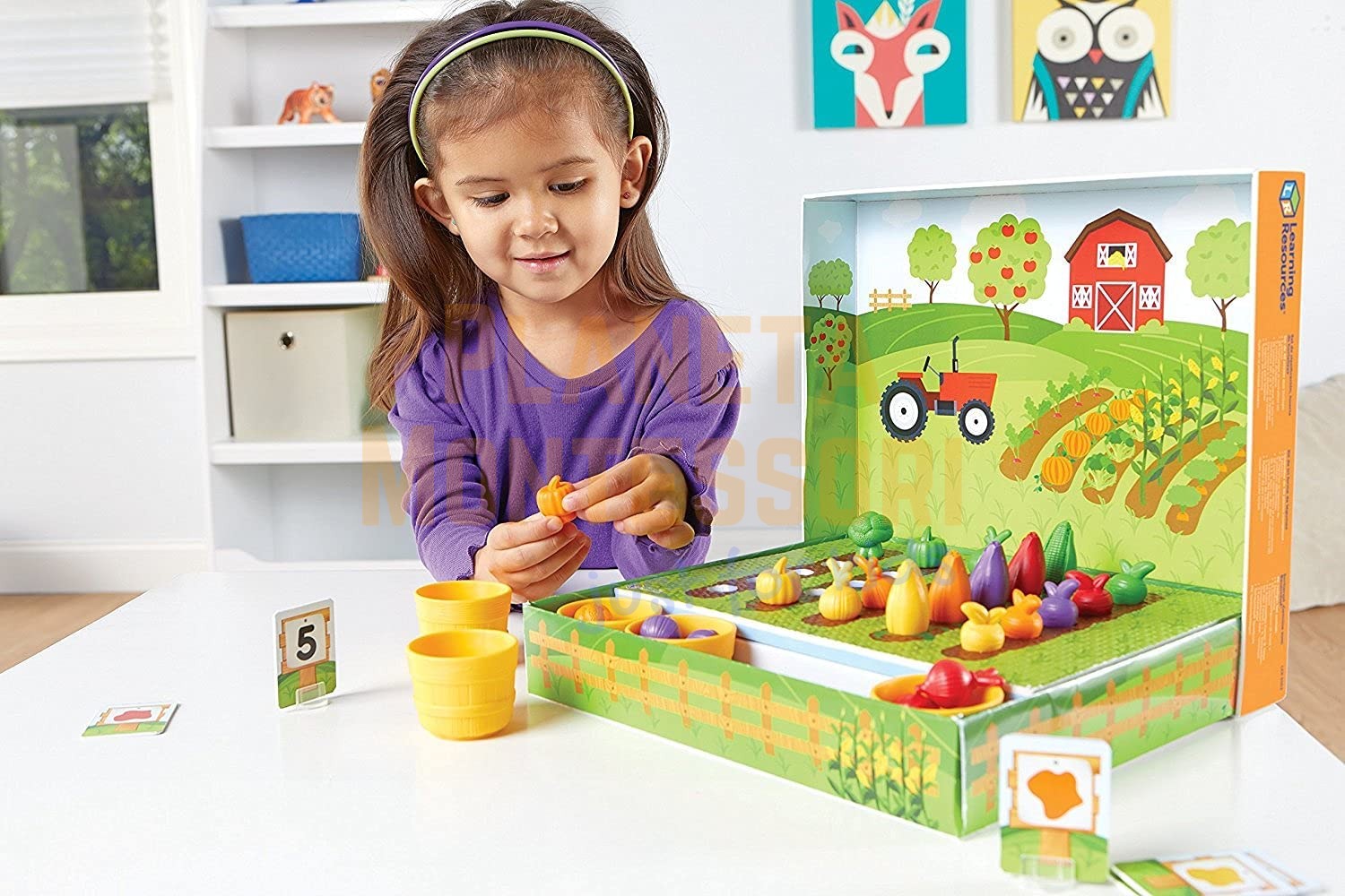 - Zachęca do rozpoznawania kolorów, warzyw i numerów, 5 różnych warzyw w 5 różnych kolorach.