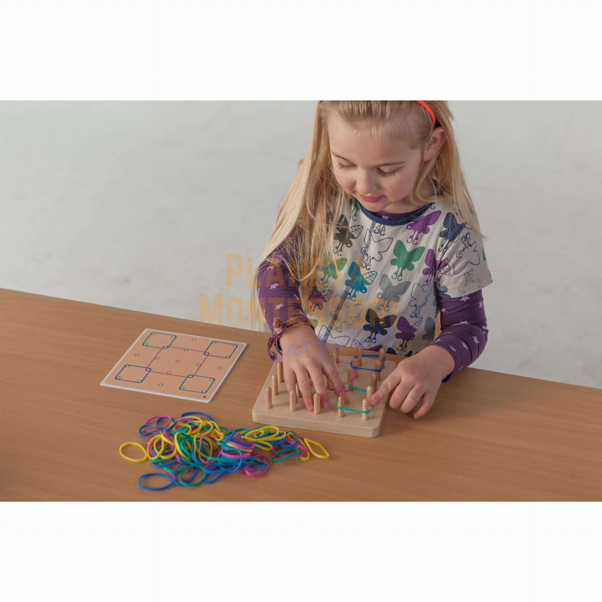 Twórz figurki, umieszczając gumki wokół szpilek. Odkryj obwód, powierzchnię, różne kąty i wiele więcej. Skorzystaj z przykładowych kart lub sam stwórz piękne kreacje.