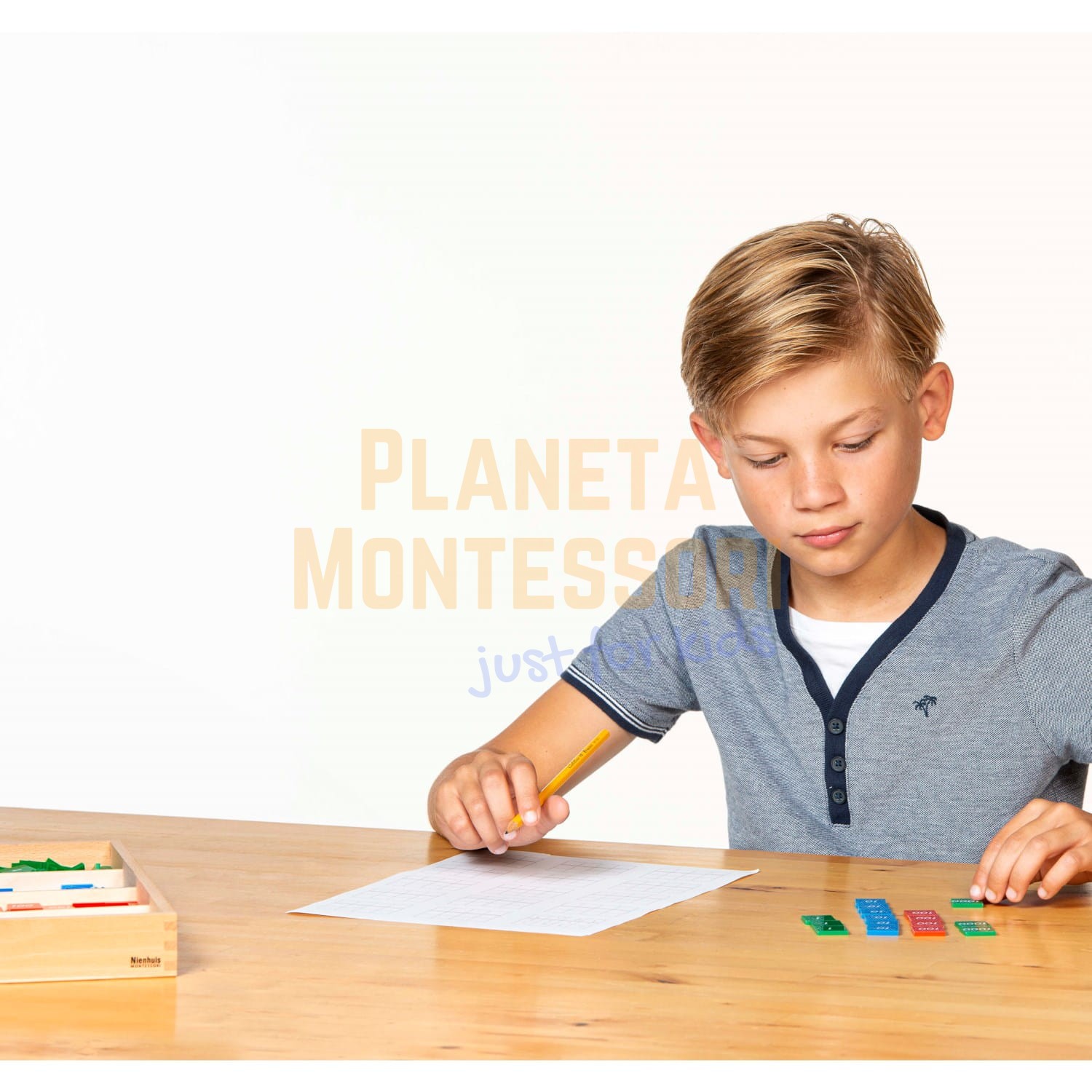 Po wprowadzeniu do systemu dziesiętnego za pomocą Materiału Złotego Koralika, Gra W Zanczki daje możliwość indywidualnego ćwiczenia w operacjach dodawania, odejmowania, mnożenia i dzielenia.