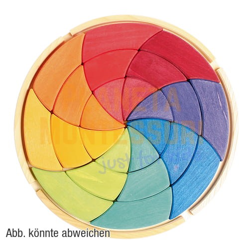 Zawartość: 24 części drewniane, olejowane/lakierowane. Wymiary: wysokość 2 cm, stelaż Ø 30 cm