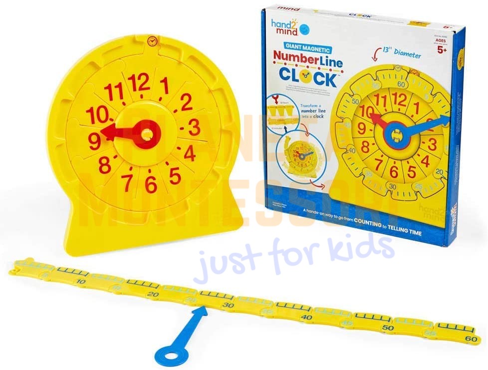 - Prezentowany zegar prowadzi dzieci do nauki liczenia i godziny, a także stanowi fizyczny i koncepcyjny związek między linią liczbową a godziną.