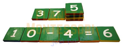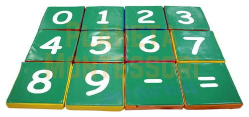 Wykonane one są z pianki i pokryte odporną na ścieranie skórą ekologiczną, łatwą do utrzymania w czystości (skajem). Zabrudzone miejsca wystarczy przetrzeć wilgotną szmatką, a dzięki zastosowaniu zamka błyskawicznego z łatwością można również zdjąć pokrowiec i wyczyścić. Na każdej bryle znajduje się cyfra od "0" do "9" oraz znaki matematyczne "=", "+" a na odwrocie tej kształtki jest znak "-".