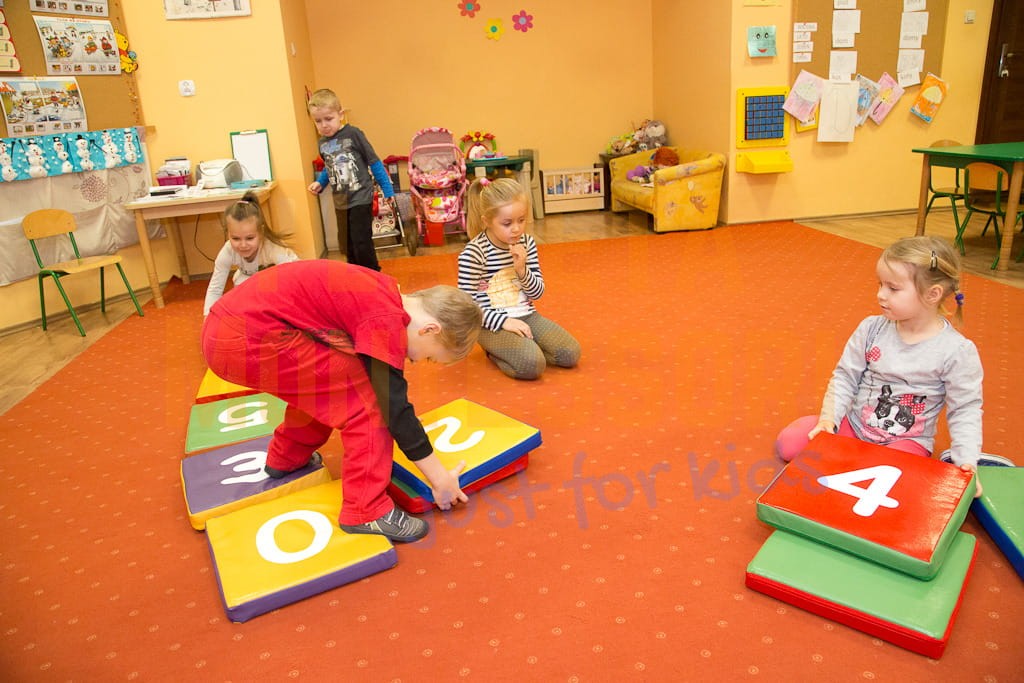 Kąciki wyposażone w klocki piankowe, stanowią niewątpliwą atrakcję. Dzieci chętnie tworzą z nich różne konstrukcje: domki, zamki, wieże lub tory przeszkód, co doskonale rozwija wyobraźnię i zachęca do współpracy i zabaw grupowych.