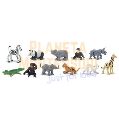 W tym zestawie znajdują się figurki młodych zwierząt mieszkających w zoo. Znajdziecie tam: zebre, pandę, hipopotama, szympansa, nosorożca, aligatora, goryla, słonia, tygrysa, niedźwiedzia polarnego i żyrafę.