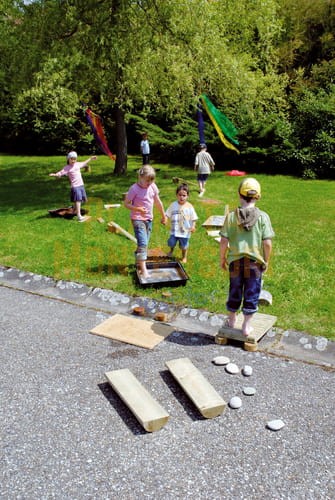 Ścieżkę przygód na bosaka mogą samodzielnie złożyć i zdemontować dzieci (w zależności od wieku dzieci pod opieką osoby dorosłej).