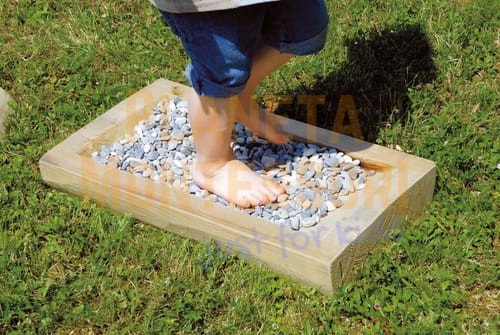Ta mobilna ścieżka przygód dla bosych stóp wykonana z naturalnych materiałów jest szczególnie odpowiednia do użytku na zewnątrz, na trawniku lub na