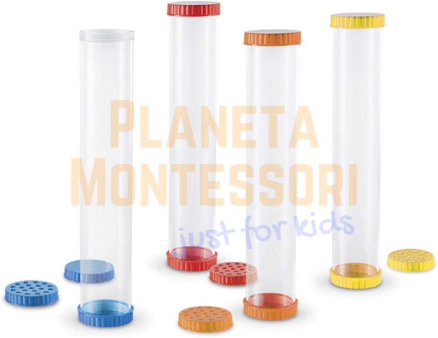 - Zawiera cztery przezroczyste, wolnostojące rurki do badań sensorycznych.