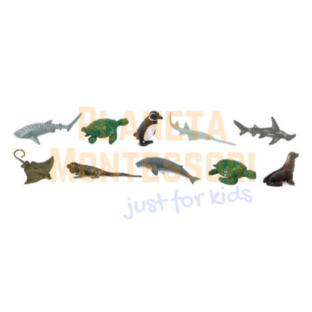 W tym zestawie znajdują się figurki zwierząt zagrożonych wyginięciem. Znajdziecie tam przedstawicieli takich gatunków jak: płetwal błękitny, rekin wielorybi, pingwina z Galapagos, lwa morskiego, orlika, rozgwiazdę, żółwia morskiego Ridley'a Kempa i wielkiego rekina młota.