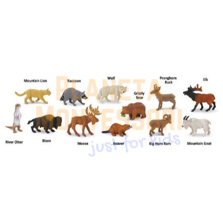 W zestawie jest 12 figurek - Zwierzęta Ameryki Północnej.