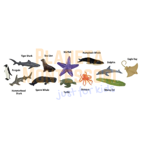 W zestawie jest 12 figurek zwierząt, które występują w oceanach.