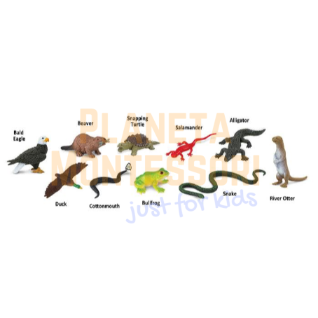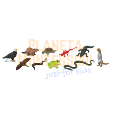Z tym zestawem figurek dzieci poznają najważniejsze zwierzęta żyjące w rzekach lub najbliższych okolicach. W tym zestawie znajduję się 10 figurek.